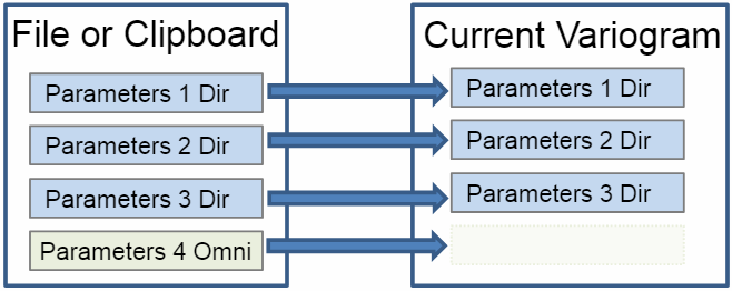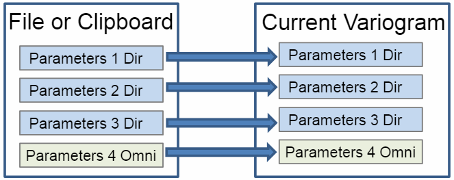 If the current Orthogonal includes an omni-directional or downhole, it is removed and the new fourth variogram is added in its place, if the file or clipboard parameters do not include a fourth variogram, then the current fourth variogram will remain as it is.