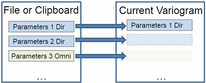 This feature allows you to import, export, copy, and paste variogram parameters for different variogram charts.