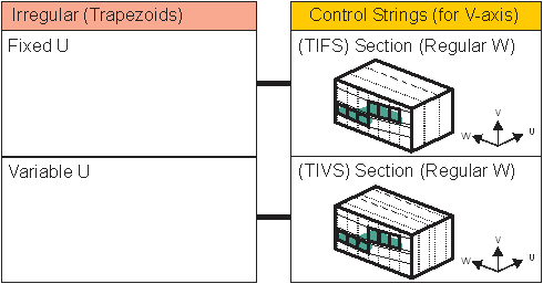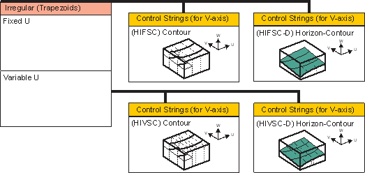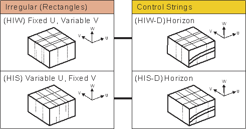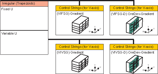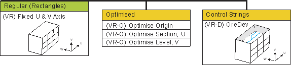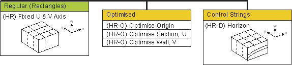 Regular frameworks, where both axes use fixed intervals (the U-axis intervals and V-axis intervals are fixed) - like having fixed section spacing and fixes level spacing for vertical orientations or fixed strike sections and fixed wall spacing for horizontal orientations.