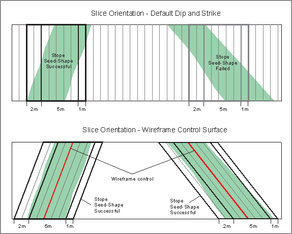 Seed-Slice (i.e. the slice intervals based on the default strike and dip or Stope Control Surface),