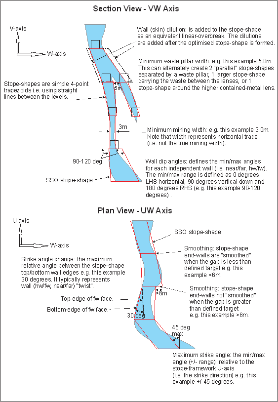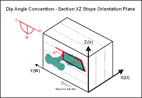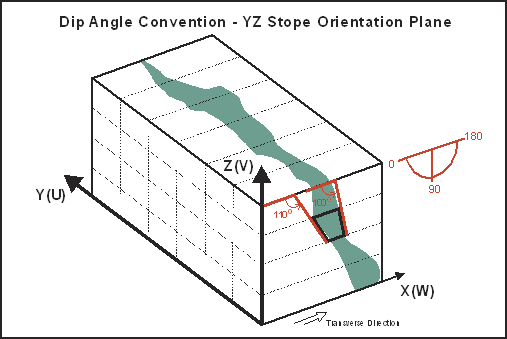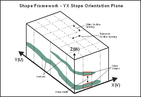 stope face, the (fixed) U and V dimensions of the stope-shape