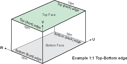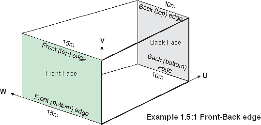 The points lay in the stope-shape UV-axis plane and the projection of the face is either a rectangle or a trapezoid where the opposite sides are parallel. Rectangular and trapezoidal shapes are special cases of 4 sided polygons. These are commonly referred to as quadrilaterals in SSO. The quadrilaterals form a tube-shape when extruded in the transverse direction representing the stope-shape W-axis.