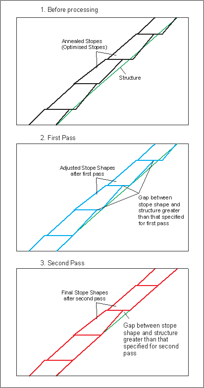 If expanding the seed-shape to the structure surface makes the seed-shape sub-economic, you do not otherwise know where a potential stope might have been (unless you do a full run without structure post-processing), so this restricts the expand-to-structure test to only the anneal phase.