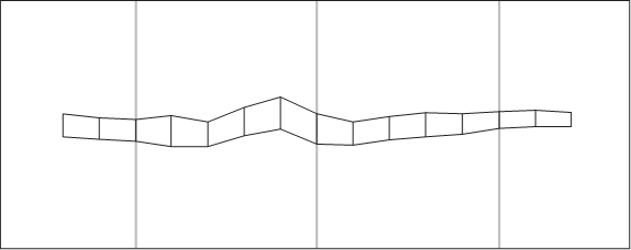 The seed / annealed stope-section-ends lying at floor level must straddle the string in order to be accepted. The strings ideally run along the floor of the stopes (but if above, they will be projected to the floor position) and assume horizontal levels. The intent of this control-string is to remove transverse pillars and transverse outliers. They may be used for dropping out irregular pillars. This function may combine transverse stopes, creating more practical but less optimal stope-shapes. An example is provided in Figure 2 ‑ 12