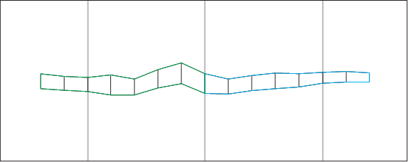 Care is required to ensure that adjacent strings extend to intersect all sections. This will avoid unintended trapezoidal shapes, or unintended gaps, as shown in Figure 2 ‑ 12 OreDev Control-String Example.