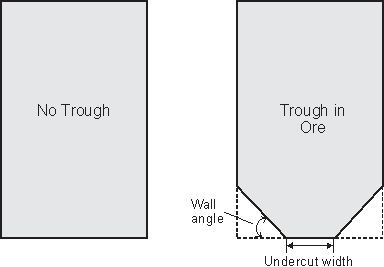 · Minimum trough-undercut wall angle from the base of the trough