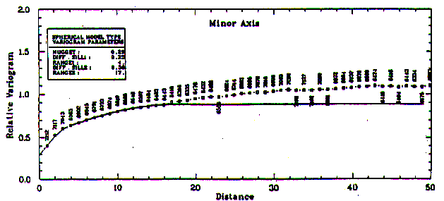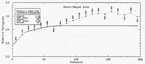The method accounts for the relationships between the samples that have arisen from common geological processes and captures this spatial correlation in a mathematical expression called the Variogram Function (Fig. 3), which allows an estimation variance or mean squared error to be calculated for any estimate.