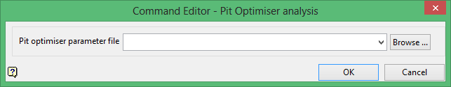 Select the Pit Optimiser file (.opf) that contains the parameters that you want to use with the Lerchs and Grossman analysis program. The available drop-down lists contains all .opf files found in your current working directory. Click Browse to select a file from another location.
