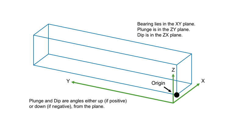 Set the rotation parameters for Bearing, Plunge, and Dip. You can do this by entering the numbers manually, or by clicking and dragging the arrows and rings on the screen.