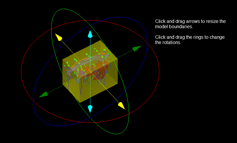 To make your data easier to see, use the Block Model Translucency % slider to adjust the transparency of the block model extents.