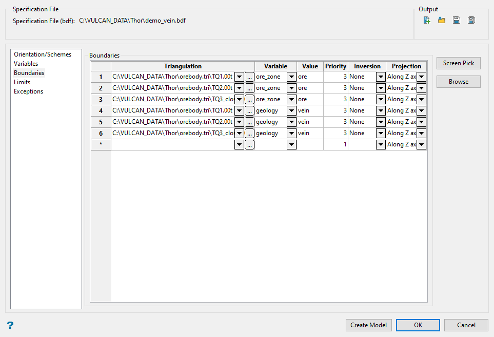 Use the Boundaries section to define how triangulations are used in your block model.