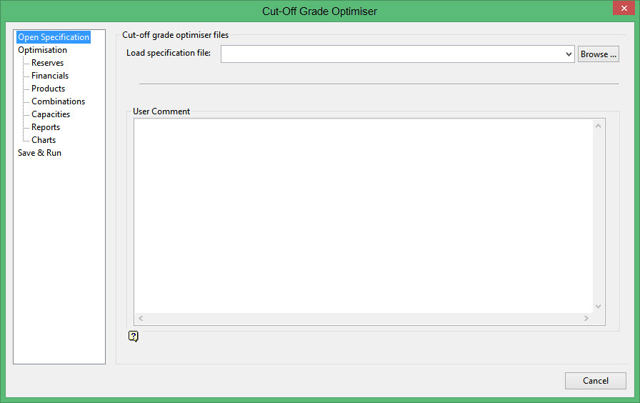 Cut-off grade optimiser files