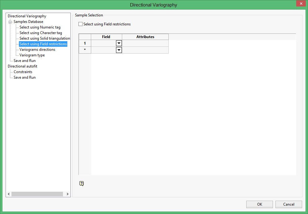 Select this checkbox if you want to limit the samples to those with fields that match certain selection criteria. Select a Field from the drop-down list and enter applicable selection criteria in the Attributes column.