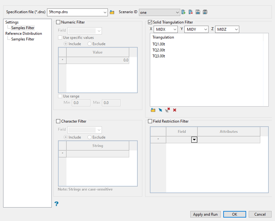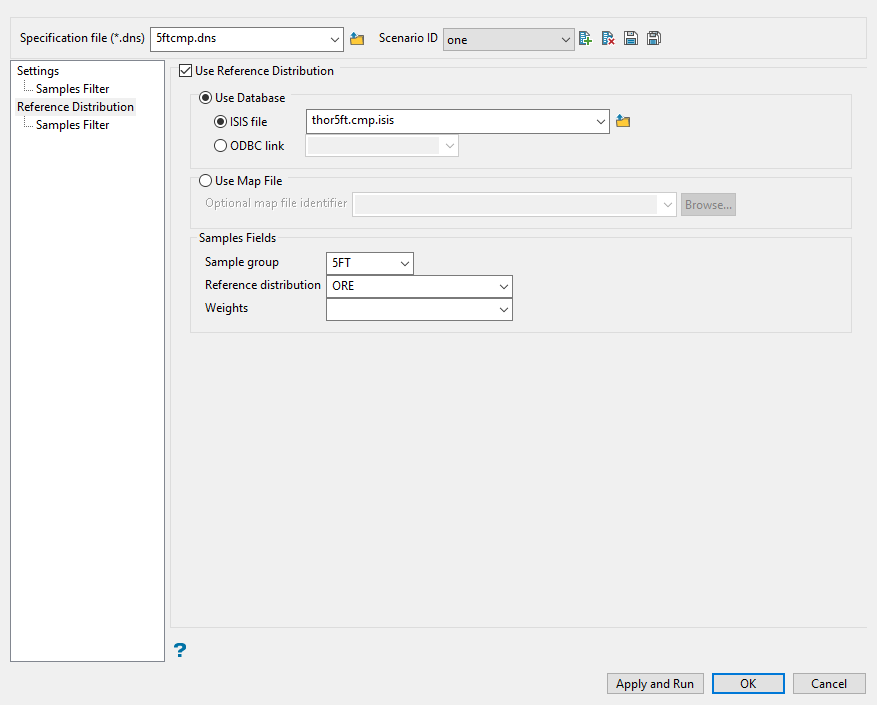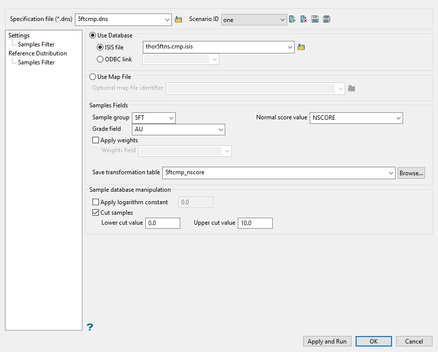 Use this pane to setup a different dataset to create the transformation lookup table to use with the block model data. In this case all the transformation conversion is defined using the reference database, but the data that gets transformed is defined through the Samples Database section of the interface.