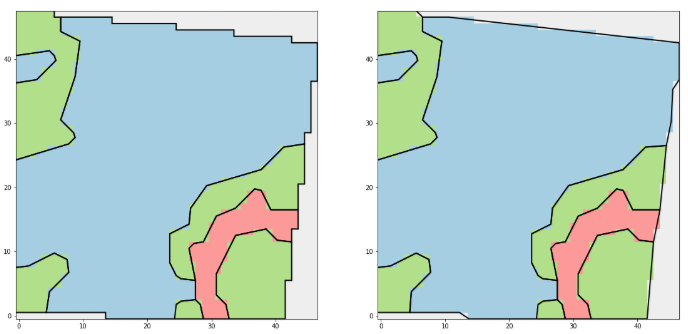 On the boundary of the block selection by default the optimiser uses non-smooth blocky polygon. When this is selected the optimiser will instead smooth those regions as well, like this: