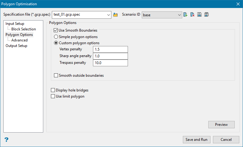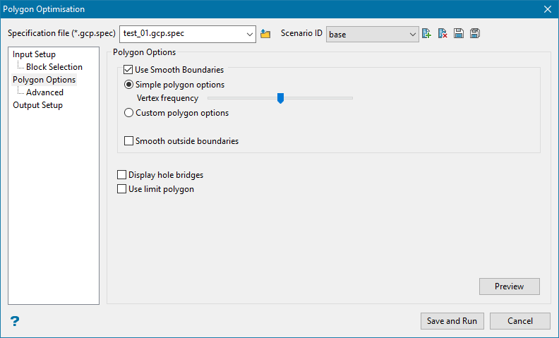 This tool generates optimal block classifications and polygon networks from a block model slice.