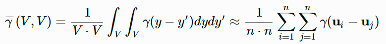The reduction factor can be calculated from the variogram average. (Use the Variogram Average option to calculate the average of a variogram value.) The resulting output, which display through the Report Window, can be used to calculate the variance reduction factor for indicator methods, such as Indicator Kriging and Indicator Simulation, and also as an aid to defining the cell size for the block model used in Sequential Gaussian Simulation. The result may also be used in volume-variance correction and change of support models.