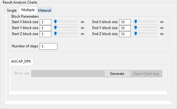 Use this panel to select Single, Multiple, or Material options for the charts.