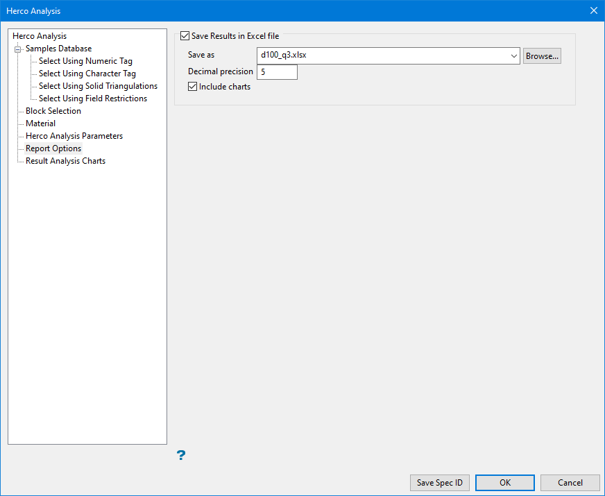 Select a specification file or enter a new name for the specification file in the space labelled Herco Analysis File. Click Browse to search for a file in a location other than your current working directory.