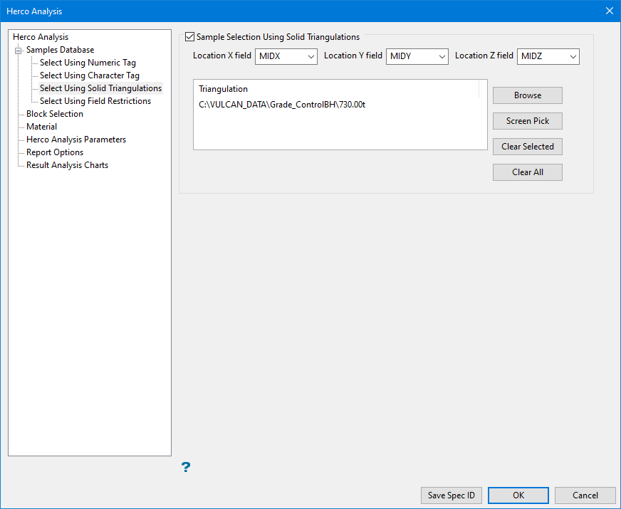 Browse button- The Triangulation Selection panel will be displayed.