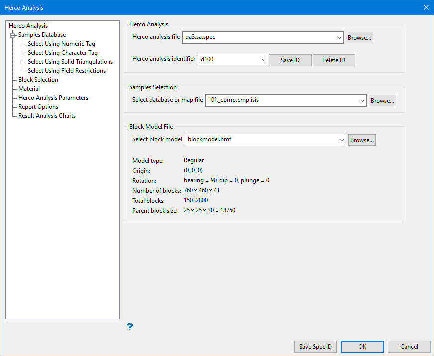 On the Block menu, point to Grade Estimation, and then click Herco Analysis.