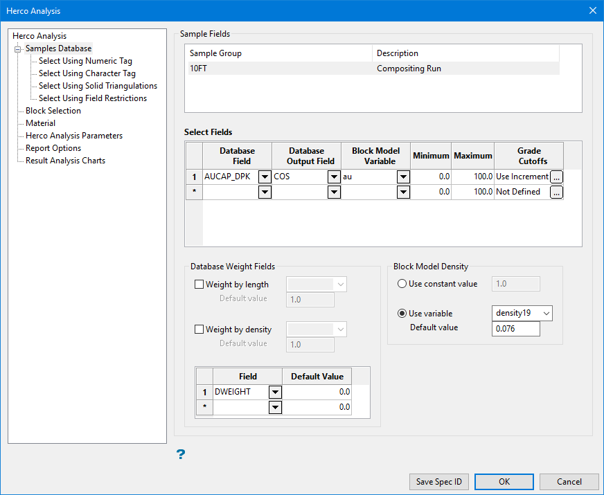 Weight by density - If the database has a defined drill density, this is used as a weighting.