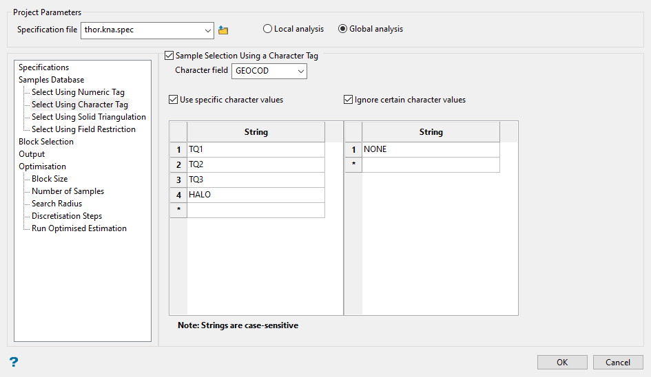 Important: You can use specific strings, ignore certain strings, or both options together. However, a sample must meet all conditions to be used in the analysis. The text strings are case sensitive and must be entered exactly as they will be found in the database.