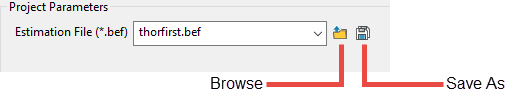Enter a name for the Estimation file, or select it from the drop-down list. The drop-down list displays all files found in the current working directory that have the (