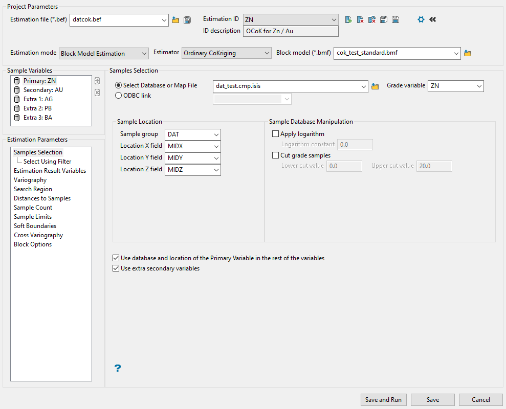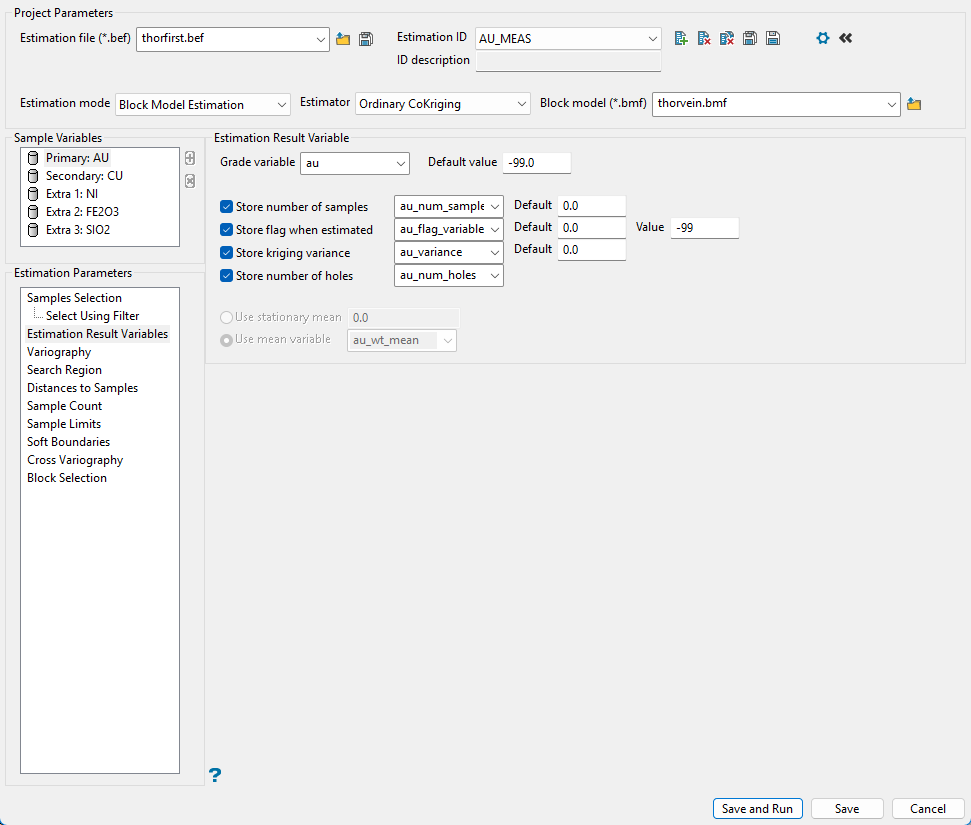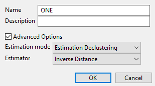 You can also change the estimation mode and estimator type when you perform the Save As in the Grade Estimation panels like Univariate, Validation and Multivariate. This allows you to reuse common parameters between those types and save time.