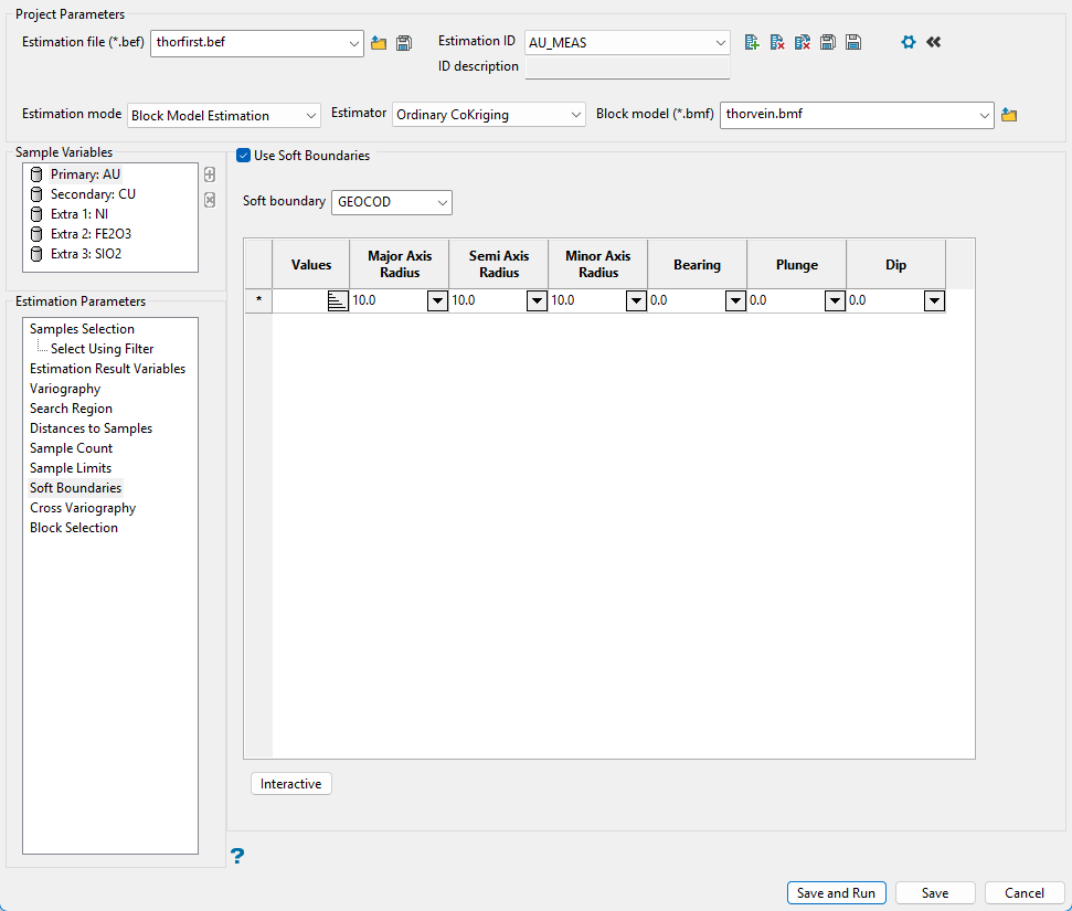 Use this panel to setup soft boundaries. Sometimes samples that are at a different estimation domain share similar grade properties when they are located close to the limit between the domains. This is often known as a soft boundary between the domains. In this case, it could be useful to include samples from a different domain but only at short distances from the blocks in the current domain.
