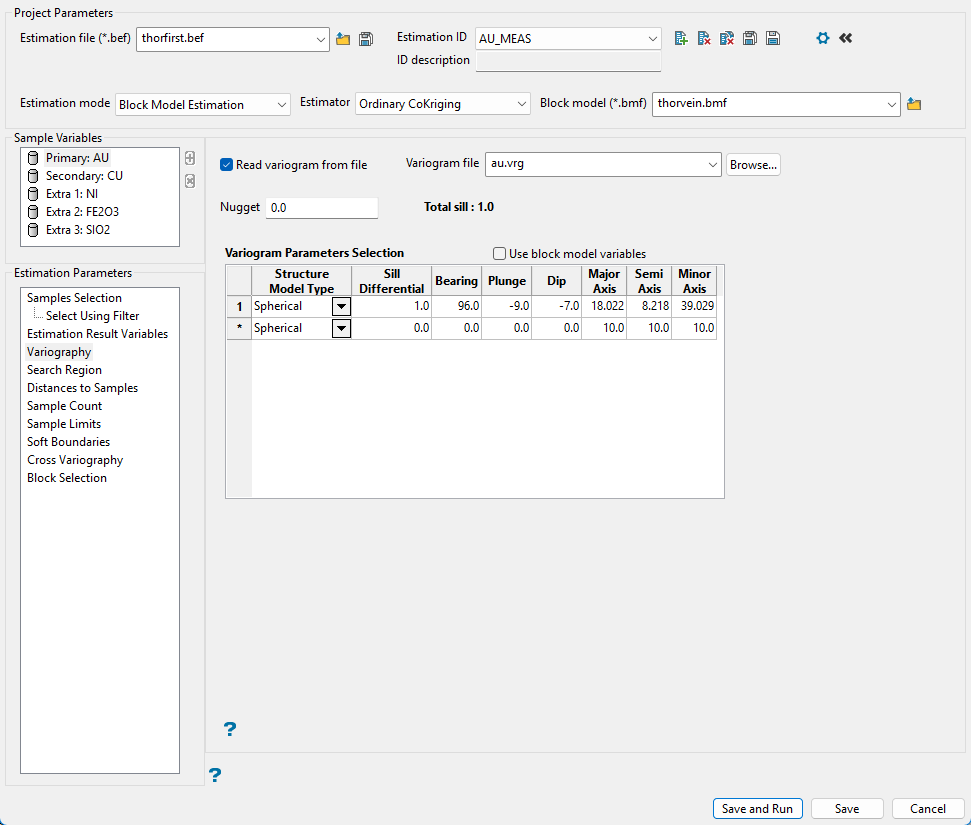 If you want to use the parameters from an existing variogram, such as one created using the Vulcan Data Analyser, click Read variogram from file, then select the file you want to apply.