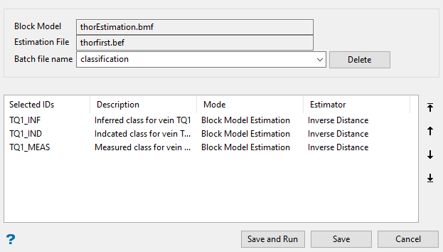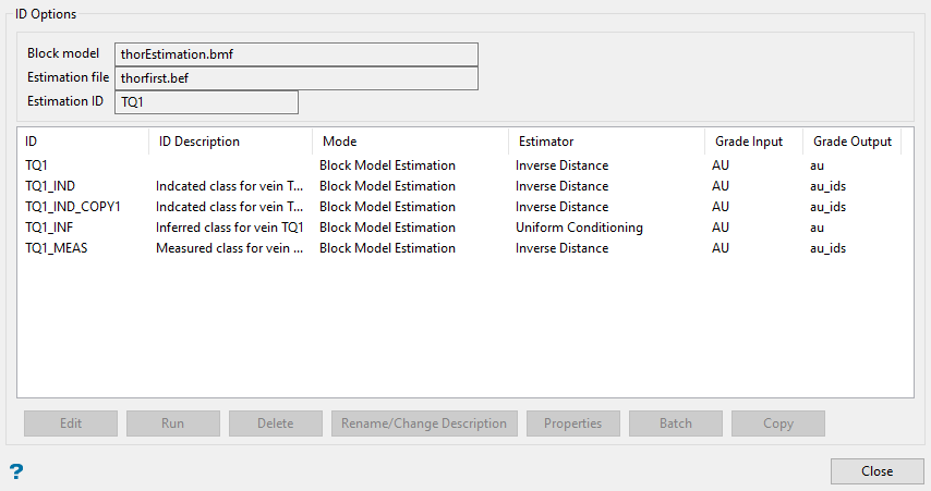 Run - Select this option to perform an estimation using the highlighted estimation ID. This option can only be used to perform a single estimation run. As a result, this option will be unavailable when multiple IDs have been highlighted. If you want to run multiple estimation jobs, use the Batch option instead.