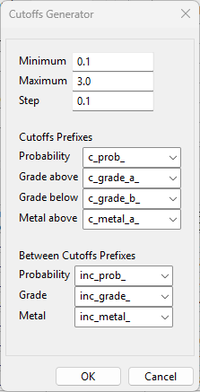 If you want to apply cut-offs to the grades used in the estimation, click Use cut grades. Specify a lower grade cut value (grades lower than this value are set to this value) and an upper grade cut value (grades above this value are set to this value).