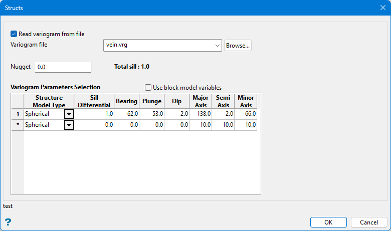 NoteThe variance is obtained by discretising the block and calculating the average variogram value for all possible pairs. The X, Y, Z discretisation parameters control the number of pairs to consider. However, evaluating that integral directly is extraordinarily difficult, if not impossible. Therefore, the variance within blocks is obtained by discretising the block with some number of sample points, and calculating the average covariance for all possible pairs within the block. The number of discretisation points can effect the final value slightly, but in practice 10 x 10 x 10 is generally accepted. (Too many discretisation points could lead to numerical precision issues; too few will give a poor estimate).