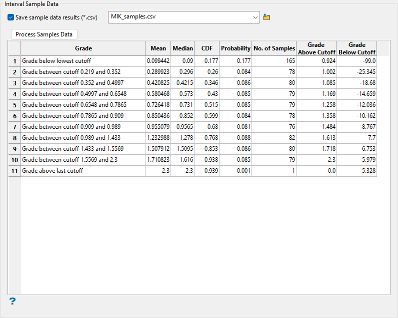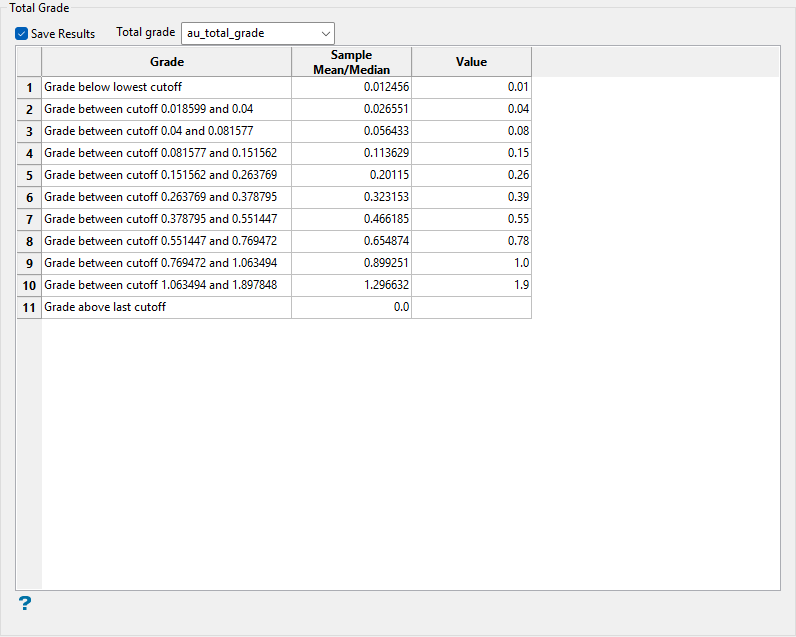 Note: Your original sample variable and block model grade variable will always appear in this list.