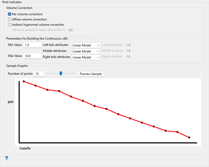 Panel ID SK OK IK UC Samples Selection * * * * * Select Using Filter * * * * * Estimation Result Variables * * * * * Inverse Distance * Variography * * * Search Region * * * * * Panel Definition * Discretisation Steps * * * * Distance to Samples * * * * Sample Count * * * * * Indicators * Interval Sample Data * Post Indicator * Total Grade * CDF Grades * Sample Limits * * * * * Soft Boundaries * * * * Block Options * * * * * Extra Variables * * * Localisation Strategy * Uniform Conditioning * -