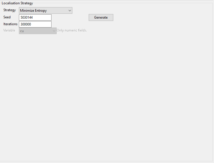 Select the localisation strategy from the drop-down list labelled Strategy. There are four types to choose from: