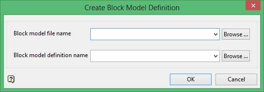 Specify the name of the block model that will be used to create the block model definition file. The name of the currently loaded block model displays by default.