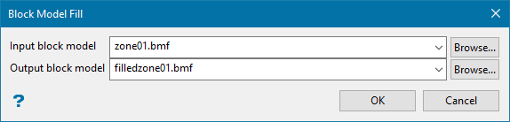 Select the block model that has missing blocks from the drop-down list if it is located in the working directory, or browse for it if it is located in another folder.