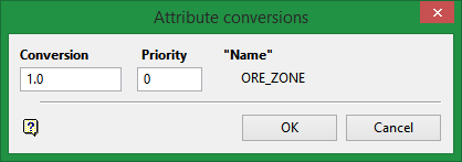 The list of entries for the selected attribute is placed in a conversion table, enabling you to associate these attributes with integer values. These are then used for the flagging. If colour or value is used as the object attribute, then the corresponding values are shown in the conversion table by default, but these can be overwritten.