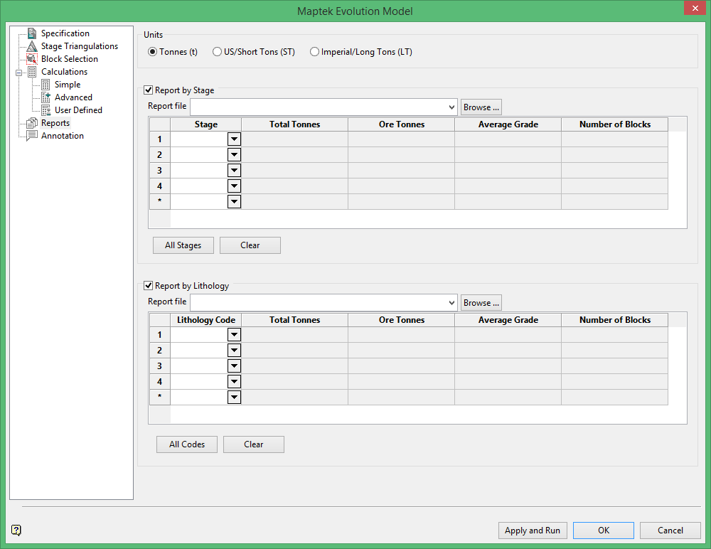Select this option to produce a report by Lithology. Select the report file from the drop-down list.