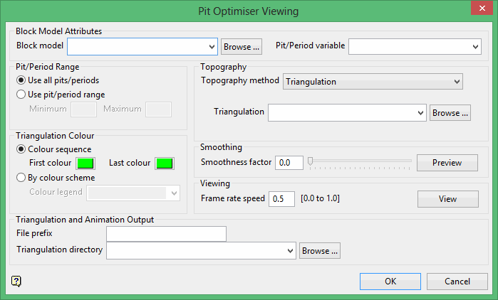 Use the Viewer option to generate triangulation shells to visualise the pit, period, or phase output from the Pit Optimiser.