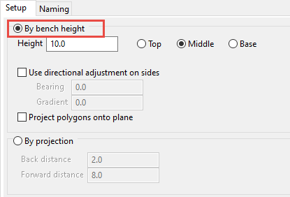 5. Select whether or not to enable the to Breakdown by Bench levels. You will be required to specify the bench origin, i.e. the starting RL, as well as the bench height.