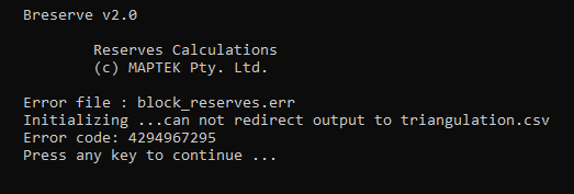 After viewing the CSV file, you must make sure it is closed before attempting to run the calculations again. If the file remains open, the following error message will be displayed.