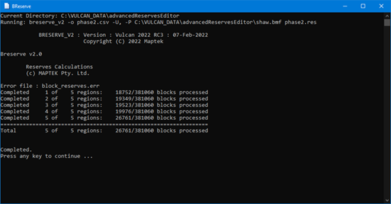 In the block model, each block was classified as belonging to one of six different regions: none, waste, fresh, volcanic, leach, or oxide. When the Advanced Reserves report is produced, it will produce reserve estimations for each of these regions separately.