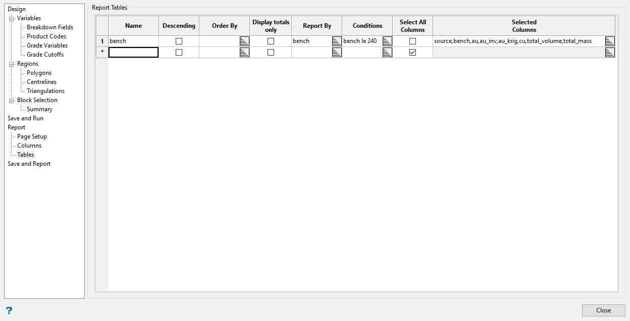 Variable – The required variables from the block model.