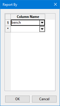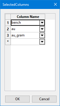 In the Fraction Field column, the drop-down lists will display all available variables from the block model. The Material Type column is required, and is used to provide a meaningful name that will be displayed in the output report.