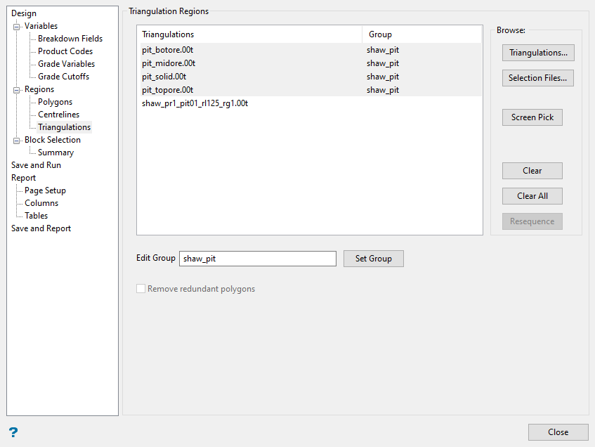 1. Select triangulations that will define the regions for which you want to calculate reserves. You can do this by using several different methods: