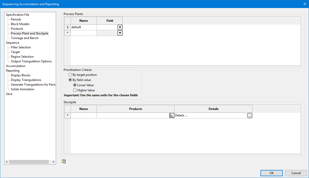 Click the icon to display the Stockpile Details panel. Use this to give additional details about the stockpile.