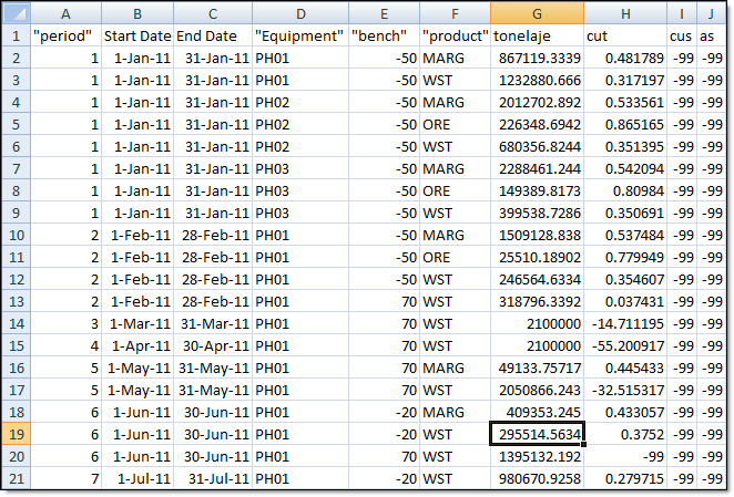 Use the Reporting option to design a mine or mill report in Excel or CSV format.